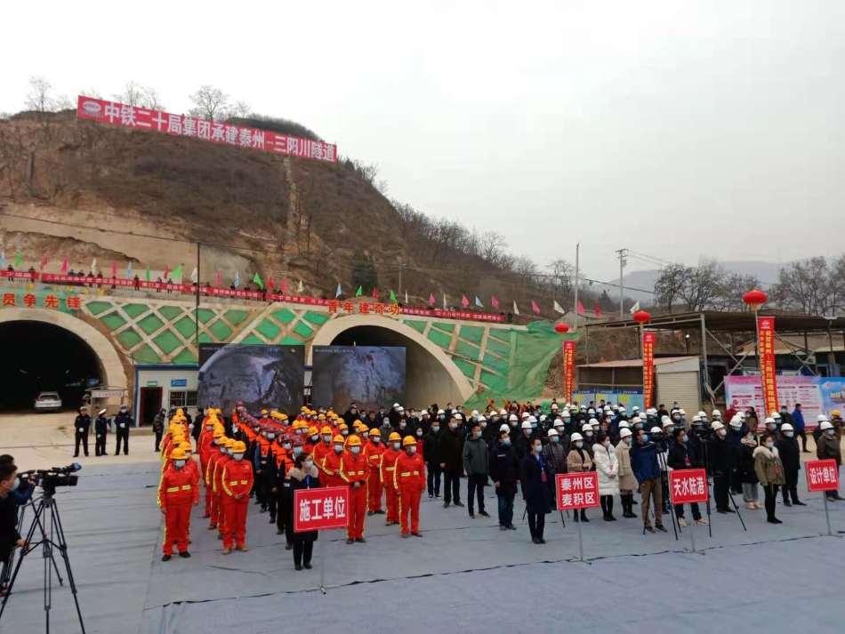 新天水快讯【记者李旺旺 常亮】1月20日,秦州至三阳川隧道贯通仪式在三阳川出口举行。