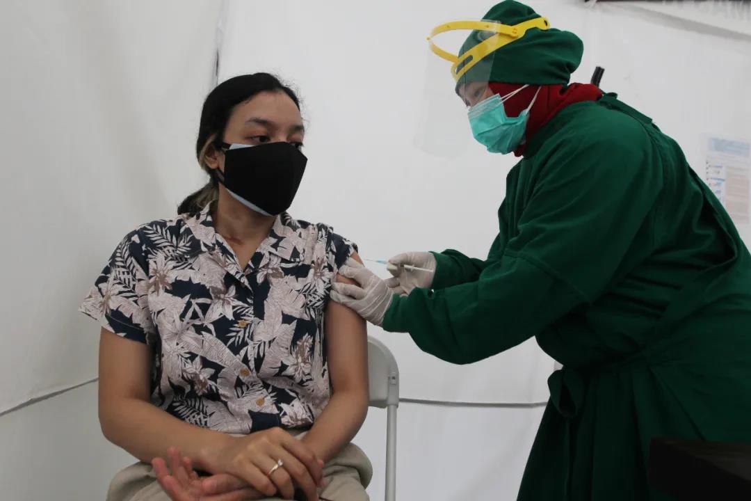 △当地时间1月15日,印度尼西亚雅加达公共卫生中心,医务人员为民众接种中国新冠疫苗。(图片来源:视觉中国)