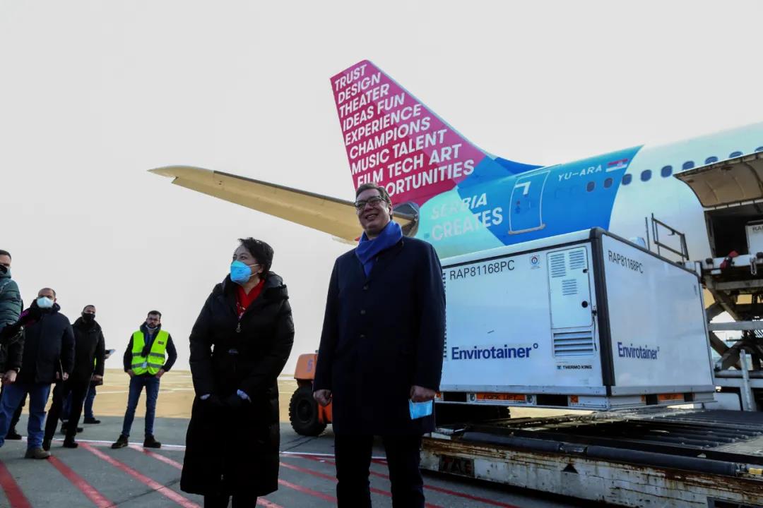 “我相信中国疫苗的质量”,当地时间1月16日上午,首批100万剂中国国药集团生产的新冠疫苗运抵贝尔格莱德,塞尔维亚总统武契奇率领政府官员前往机场迎接。