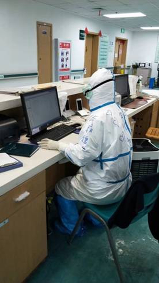 郭媛媛的工作主要负责病区新入确诊患者收住,接待,入科宣教,病区所有患者每日医嘱处理以及药品的领取和发放,协助治疗班核对次日医嘱单。由于每个地区的医院办公系统都不一样,要想能拿下工作,只有从头开始学。令郭媛媛记忆犹新的是第一次脱下防护服浑身感受到清凉的自在,摘下N95口罩后深吸一口还夹杂着消毒水的空气时,感到竟是如此舒畅,此刻让她对生命的敬畏又多了一重。“和我一起搭班的老师是本院的,他们从去年年前就开始忙碌,一直到我们来每天都在上班,穿上防护服讲话真的很累,要想让别人听清楚有时候就必须大声地喊出来,我们的工作每天要接收很多信息,常常需要提问,老师回答得也很多,到下班的时候我能感觉到她连呼吸都困难,而我也是。”