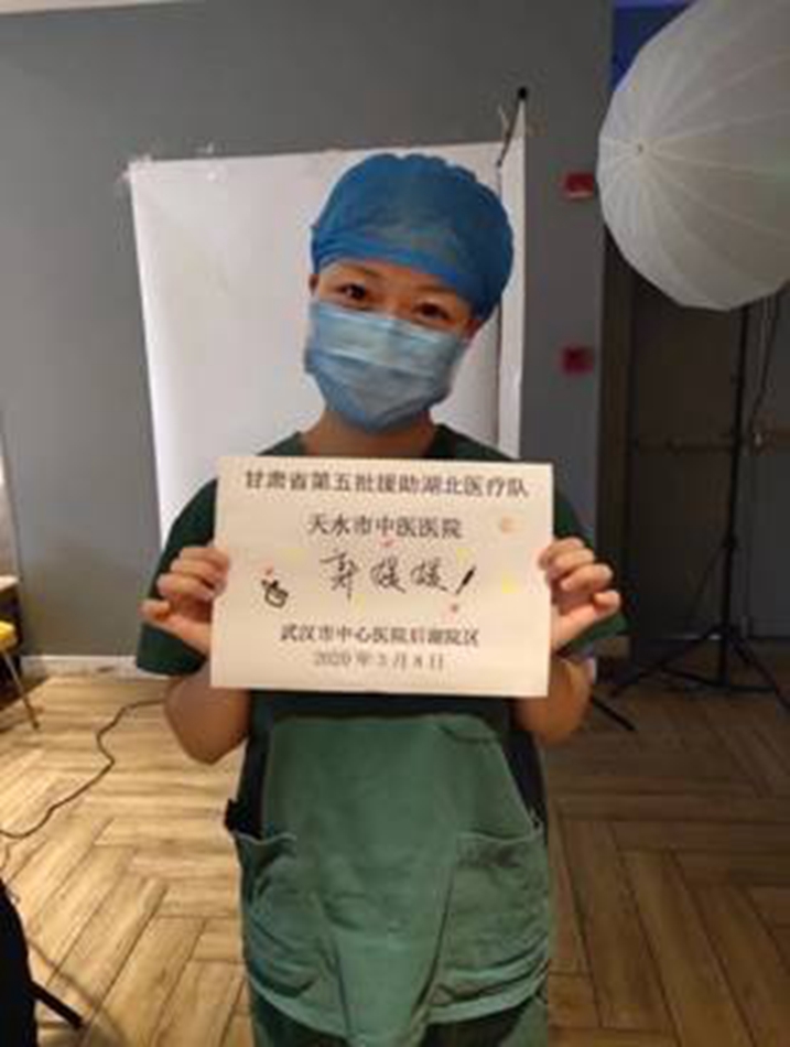 郭媛媛是天水市中医医院脑病二科护师,作为甘肃省第五批援鄂医疗队队员,在武汉市中心医院发热18区参加抗疫工作33 天。