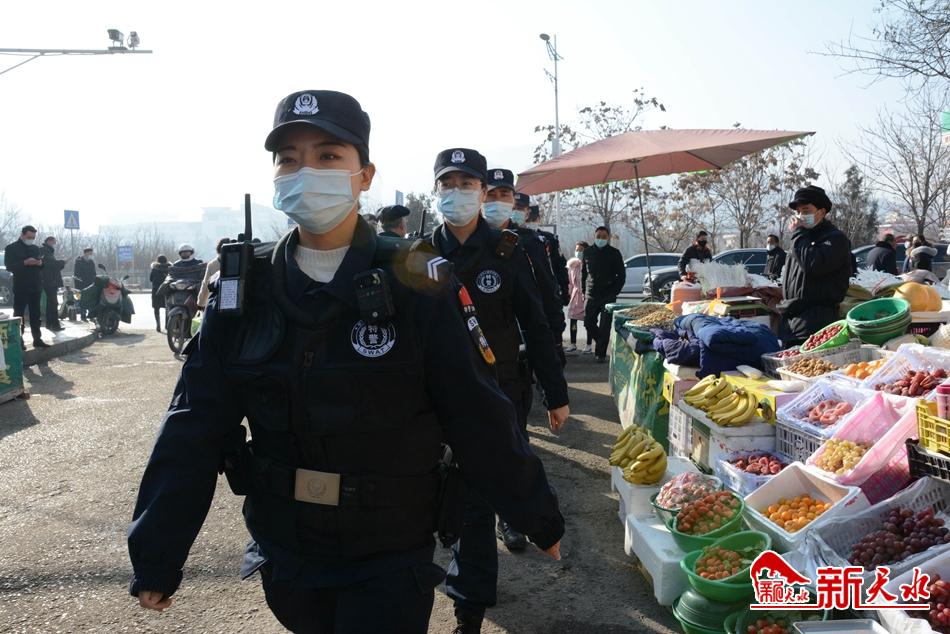 在景区一圈巡逻结束后,我们又来到坚家河菜市场,我跟着赵菲菲一起巡逻,见到有一个摊主没有戴口罩,赵菲菲立即喊道:“这位师傅,麻烦把口罩戴好。”这位摊主听到后立即将放在下巴上的口罩调整着戴好。在赵菲菲说完后,我惊叹赵菲菲在这样嘈杂的菜市场还能清晰地喊出这一句话时,赵菲菲笑着说:“这都是练出来的,我在去年刚上班的时候也正是疫情严重的时候,领导让我通过对讲机给市民宣传防疫知识,和提醒市民戴口罩或者将人群聚集的疏散开,当时我根本就喊不出来,然后我们队长给我示范了几遍,一周以后我才习惯了,因为我觉得这是我应该做的事情,所以后面也就放开了。”