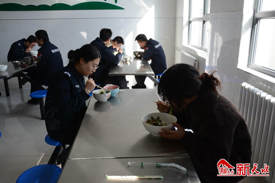 中午12时,我们回到支队,特警队员们已经列队完毕准备吃饭了,我跟着赵菲菲也赶紧站到队列中,听到大家嘹亮的歌声,心情很激动,确实有种鼓舞士气的作用。唱歌结束后,大家走入食堂,有序地进行打饭,因为疫情期间,大家也都是保持安全距离进行用餐。在用餐过程中,我又和赵菲菲聊了很久。