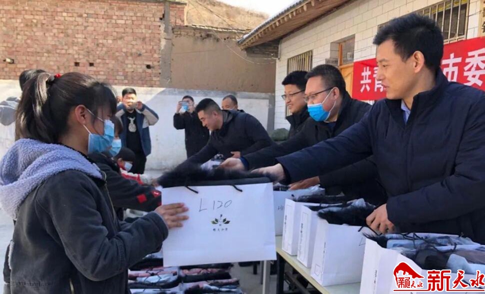新天水讯 1月22日,共青团天水市委在麦积区、武山县、清水县、张家川县举行“暖冬护童”温暖包发放仪式,为需要帮助的贫困中小学生,捐助包括羽绒服、手套、棉袜等生活用品在内的温暖包320份,保障他们温暖过冬。 (辛闻)