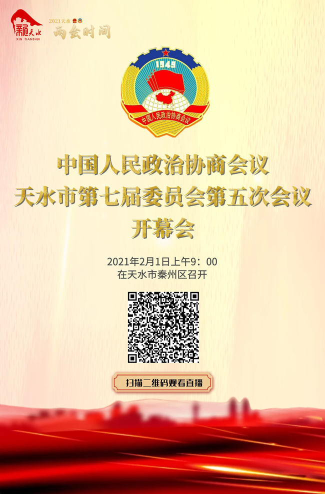 中国人民政治协商会议天水市第七届委员会第五次会议将于2月1日(星期一)上午九时在天水市秦州区开幕,天水正式进入两会时间。