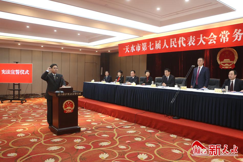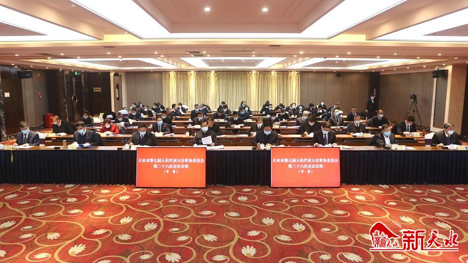 新天水讯【记者马放】1月29日,市七届人大常委会第三十六次会议召开。市人大常委会主任蒋晓强,市人大常委会副主任安志宏分别主持第一、二次全体会议。出席会议的常委会组成人员符合法定人数。