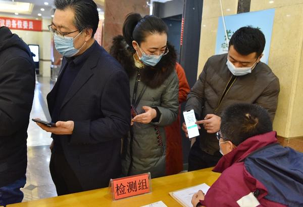 上午9时刚过,在委员驻地现场,委员们佩戴口罩陆续抵达,报到入口处设置了红外线测温仪,大家入场时的体温实时显示在电脑屏幕上。委员们在出示甘肃健康出行码、核酸检测报告结果后,在工作人员引导下,有序办理相关手续、领取证件和资料,依次完成报到程序。整个报到流程便捷高效、井然有序。