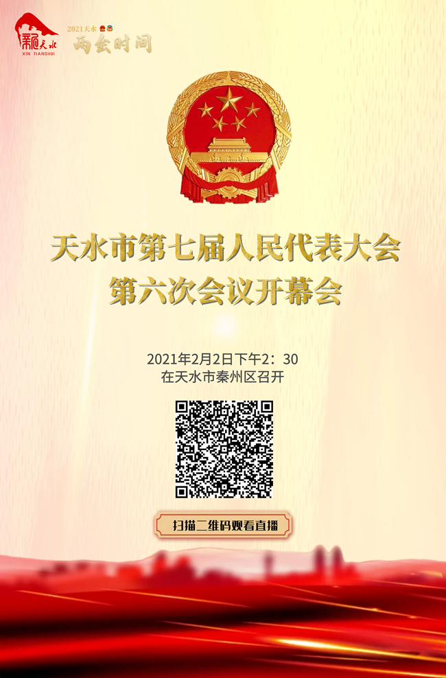 明天(2月2日)下午2:30,新天水客户端将同步现场直播市七届人大六次会议开幕会,第一时间呈现开幕盛况,敬请扫码收看。