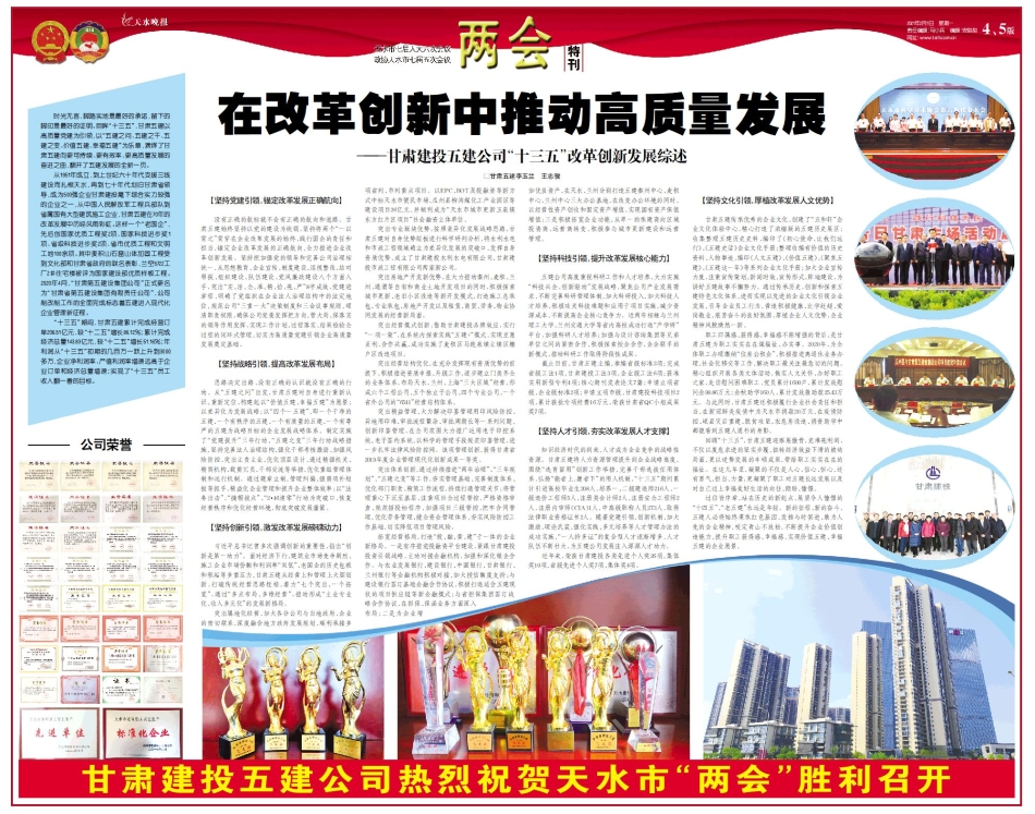 【启航两会】甘肃建投五建公司“十三五”改革创新发展综述