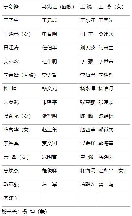 天水市第七届人民代表大会第六次会议主席团和秘书长名单