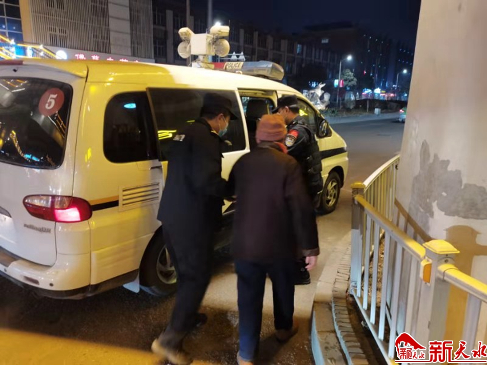 由于寒冬的夜晚温度非常低,民警怕老人着凉感冒,便将老人安置于附近的店铺内取暖,并找来热水给其喝,同时与老人进一步沟通交流,安抚老人情绪。