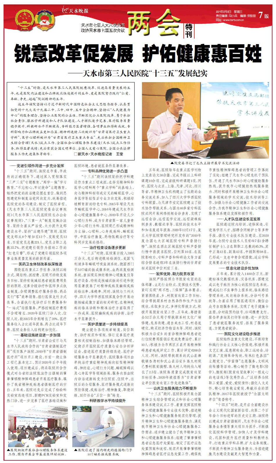 锐意改革促发展 护佑健康惠百姓——天水市第三人民医院“十三五”发展纪实