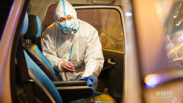等学生的空当,倪庆德抓紧时间为保障车消毒。长城网记者冯硕摄