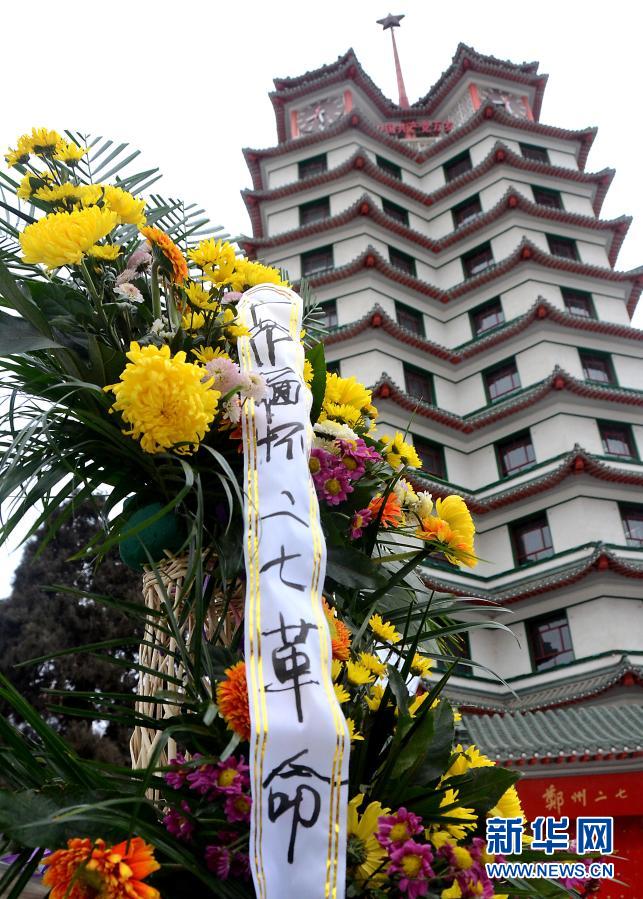 郑州二七纪念塔前摆放着市民送来的花篮(2013年2月7日摄)。新华社记者王颂 摄