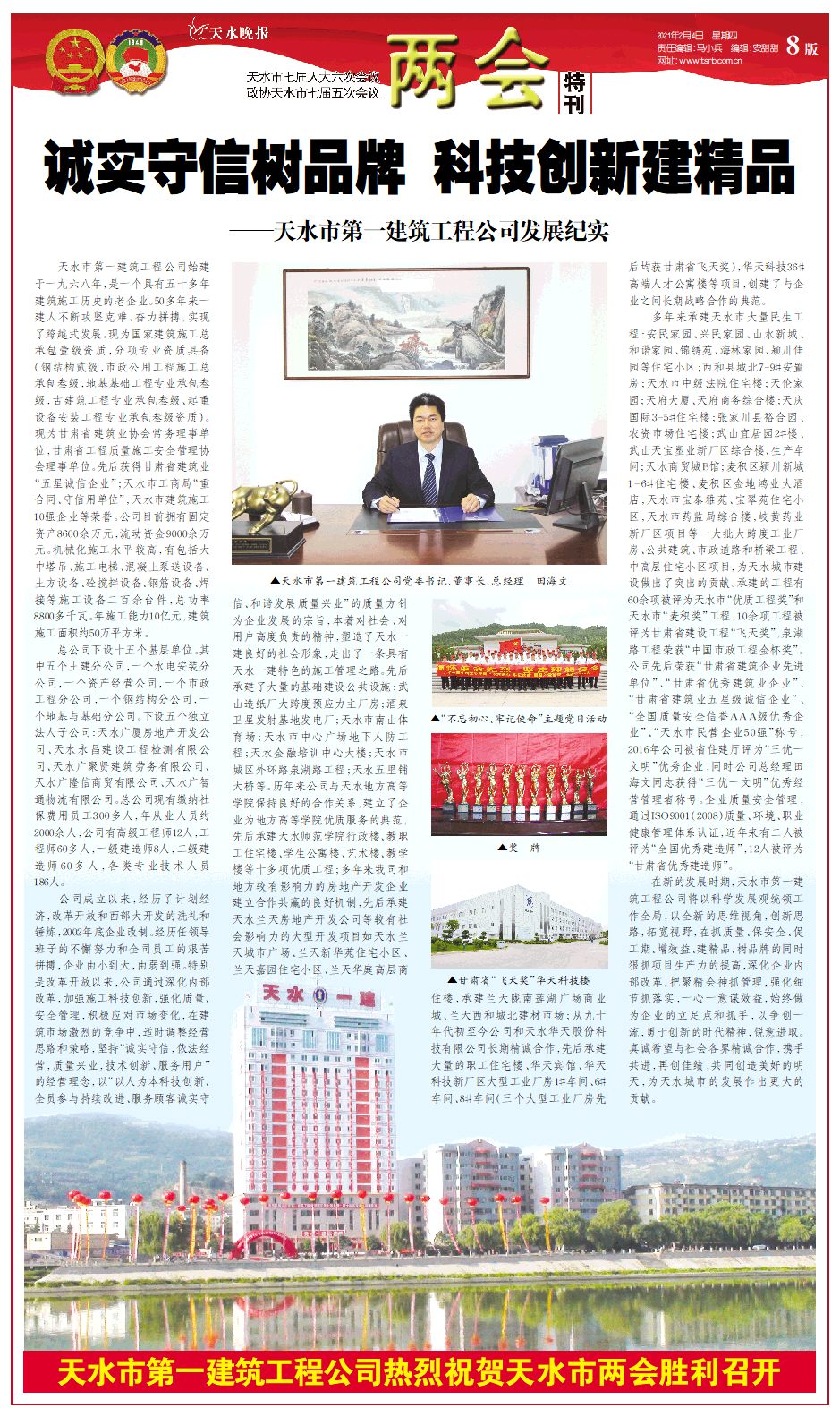 【启航两会】天水市第一建筑工程公司:诚实守信树品牌 科技创新建精品