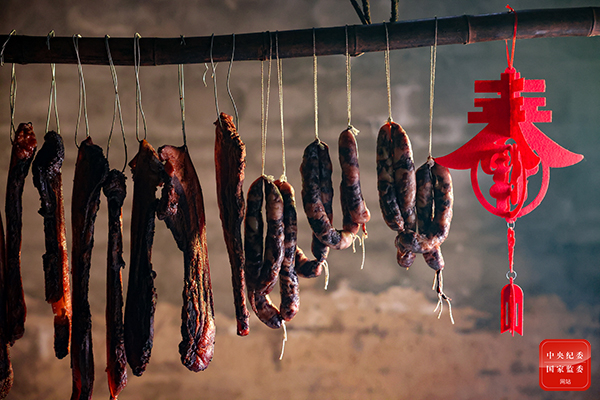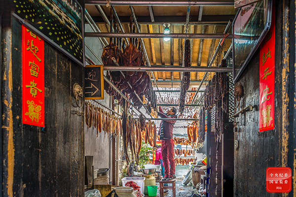 过年,腊味必不可少,广西壮族自治区桂林市永福县家家户户都早早准备起年夜饭的食材,为了一家人团团圆圆过个幸福年。(广西壮族自治区桂林市永福县纪委监委供 邱岗诚 摄)