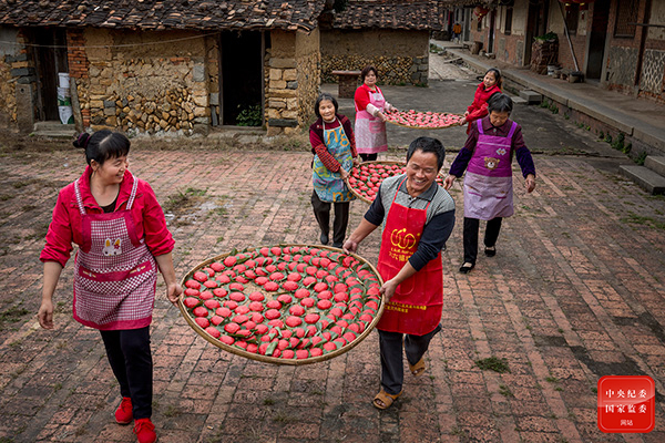 小年前后,福建省莆田市荔城区家家户户制作红团,作为春节期间必备的莆仙传统小吃,红色的外皮和圆润的形状,预示着新的一年红红火火。(福建省莆田市荔城区纪委监委供 刘朝阳 摄)