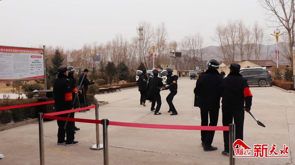 新天水讯【记者 张彬霞】2月4日,秦安县公安局五营派出所联合大地湾文物管理所,在大地湾博物馆组织开展“平安景区”应急处突演练活动。