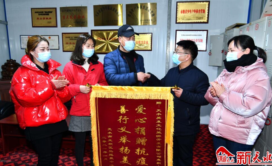 新天水讯 爱心助力抗疫情,真诚致谢送锦旗。连日来,麦积区马跑泉中心卫生院工作人员先后来到天水昊发文化旅游开发有限公司麦积山滑雪场、甘肃伏羲御果电子商务有限公司和甘肃华玮广告工程有限公司,将写有“爱心捐赠抗疫情,善行义举扬美名”“爱心苹果、助力抗疫,守望相助、共克时艰”“善行义举、共抗疫情,爱心捐赠、传递温情”的一面面饱含真挚谢意的锦旗,分别送到各爱心企业负责人手中,真诚感谢爱心企业在2020年新冠肺炎疫情防控中,在疫情防控物资极度匮乏的关键时刻,3家爱心企业通过多种方式,积极捐赠爱心苹果、爱心物资,以爱心企业的善行义举助力马跑泉中心卫生院为百姓健康把好关、守好门,为打赢疫情防控阻击战传递了正能量。