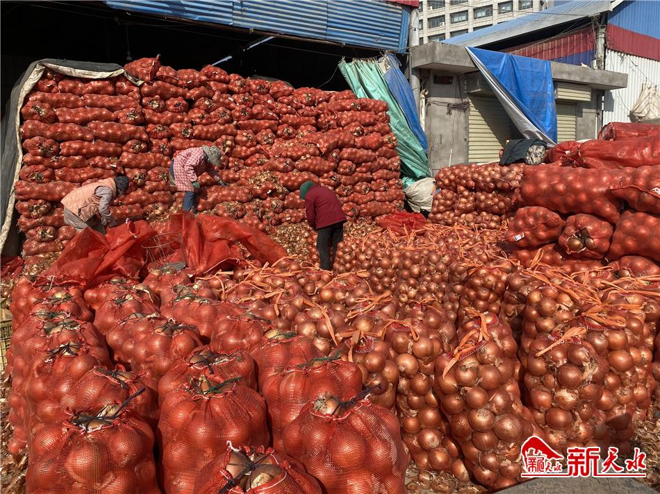 眼下,正是洋葱大量上市的时候,批发商白能巧正忙着招呼着工人剥皮整理,记者看到,市场上有红皮和黄皮两种洋葱,红皮洋葱批发价在3元/公斤,黄皮洋葱批发价在3.8元/公斤。批发商白能巧是市场里的洋葱批发大户,她告诉记者,进入腊月后,洋葱每天的批发量能达到15吨左右,现在货源充足稳定,希望能有更多的人到她这来批发洋葱。