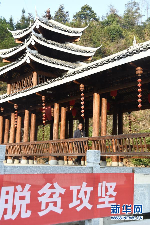 58岁的兵书阁村农民吴泽文走过花界起点的风雨桥(1月28日摄)。新华社记者 周勉 摄