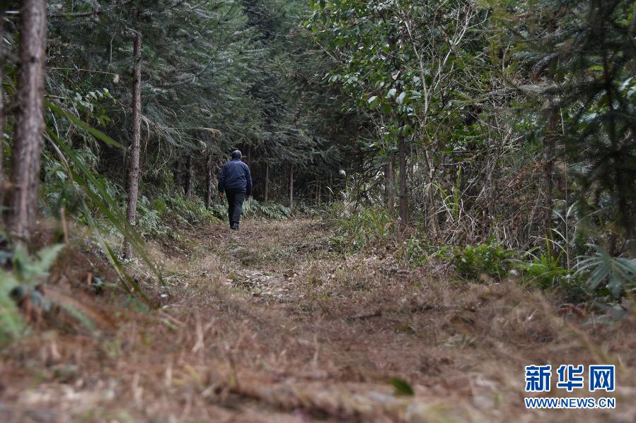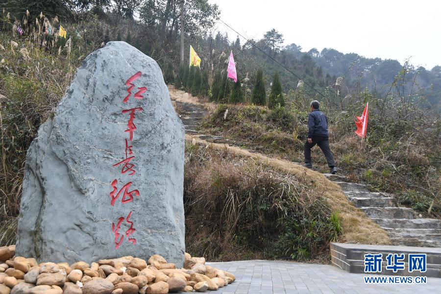 58岁的兵书阁村农民吴泽文走在红军当年走过的路上,这条名为“花界”的路如今还保留着当年红军走过时的样子(1月29日摄)。新华社记者 周勉 摄