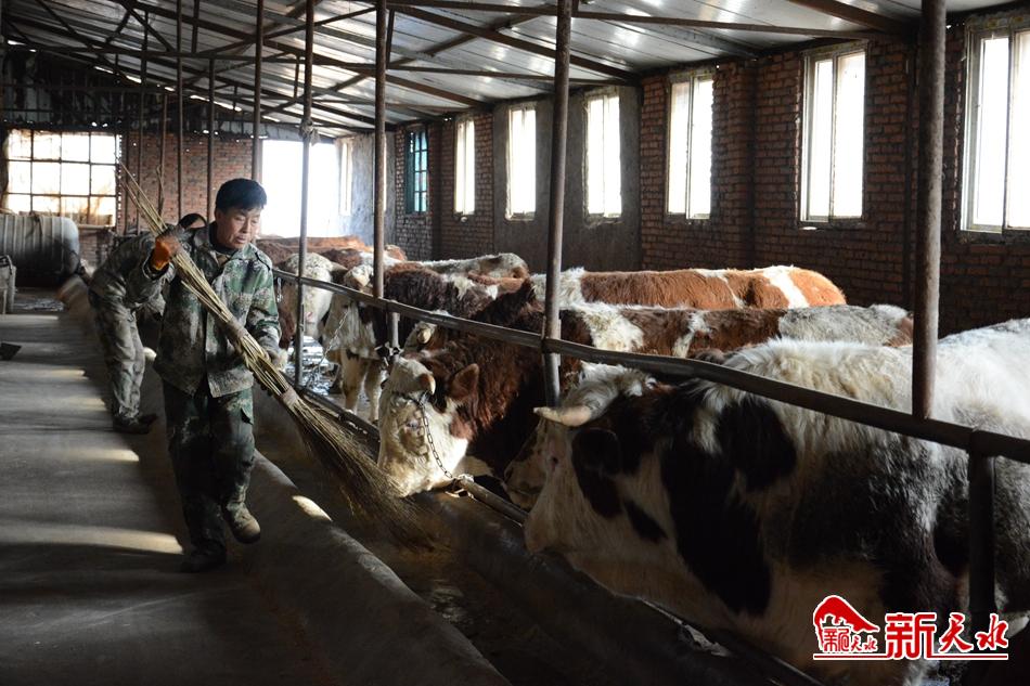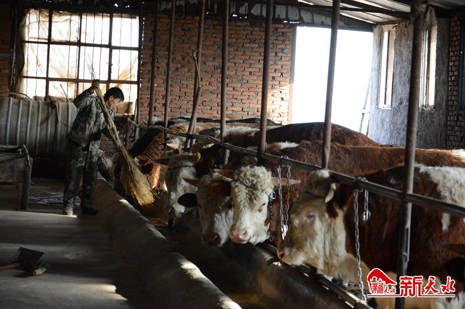 牛舍里,杜春明正在清理食槽。他告诉记者,前些年,他一直在建筑工地上打工。自从村里成立合作社搞起养殖后,他选择了在家门口务工。“每月3000余元的工资,虽然没有在建筑工地上挣得多,但工资稳定,而且还能照顾到家里,让脱贫后的我们有了稳定经济来源,感到很满足!”杜春明说。