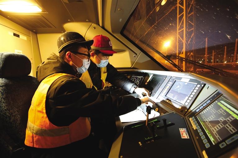 凌晨3时,陈子文的徒弟见习生宋恒志学完理论知识后,赶到存车场学习打温作业。宋恒志跟在师傅后面,认真观察着师傅的作业,不停地问长问短,今年是这个“98后”东北娃的首个春运。