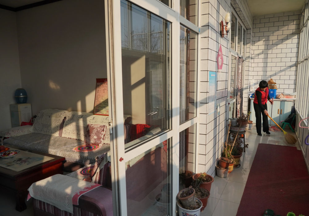 2月9日,平山县西柏坡镇北庄村的村民王俊彦在家中打扫卫生。新华社记者 杨世尧 摄