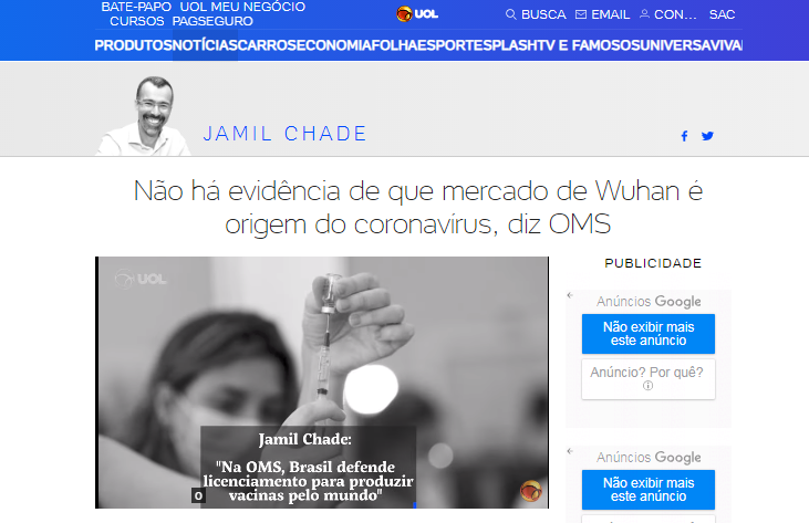 巴西发行量最大的报纸《圣保罗页报》当地时间9日在其官网刊文报道说,中国-世卫组织新冠病毒溯源研究联合专家组召开新闻发布会宣布,没有证据表明新冠病毒起源于武汉华南海鲜市场,也没有证据表明在2019年12月之前新冠病毒已在武汉传播。文章还引用专家组组长彼得·安巴雷克的表态,称新冠病毒源于实验室泄露“极不可能”。同时,有专家还指出,新冠病毒可能在武汉首批病例被发现前数周就已在世界其他地区传播。