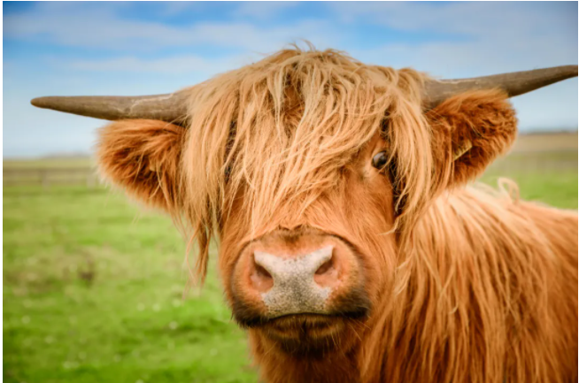 △苏格兰高地牛有着蓬松的毛发和惹眼的刘海,具有坚韧和勤奋的特质,深受当地人喜爱。