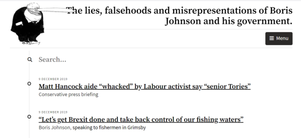 图源:罗列约翰逊从政以来发表不实言论的网站“鲍里斯的谎话”