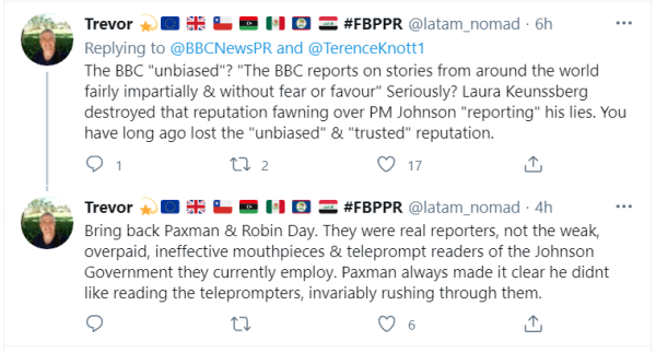 除了辛辣的批评外,不少英国网民则对BBC近年来公信力下降表示惋惜。