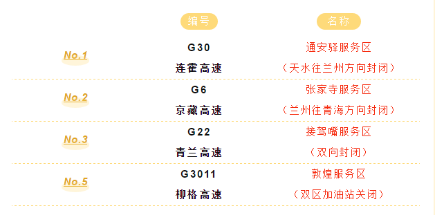 G30连霍高速绣花庙路段、乌鞘岭路段;