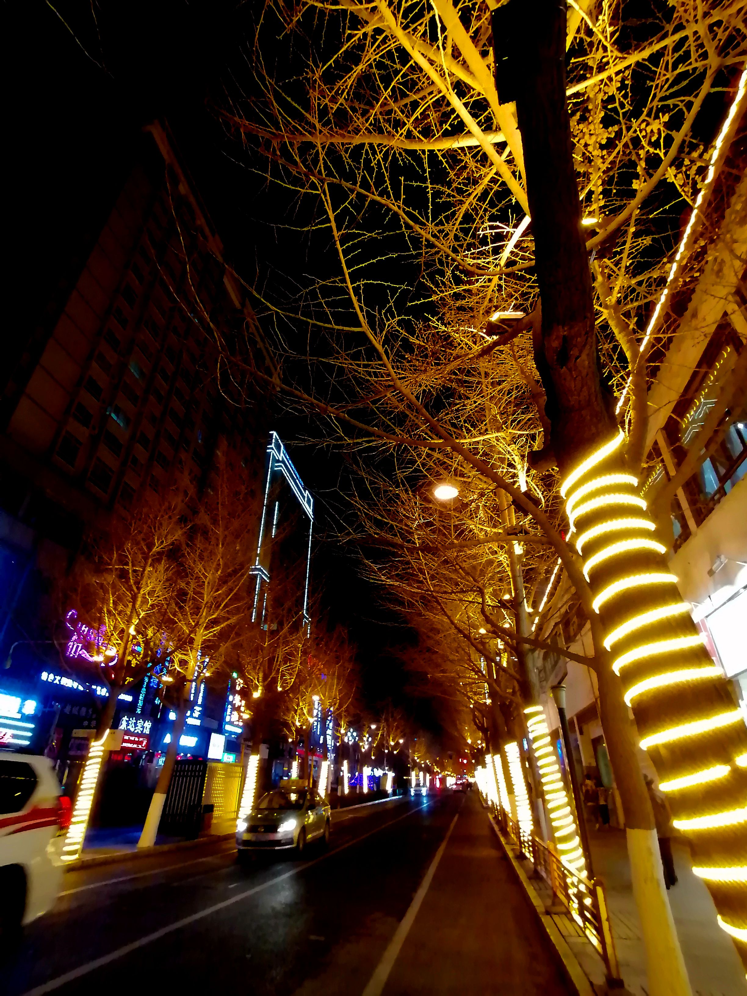 秦州区青年南北路街道上对望着的金黄色彩,温暖祥和。天水的春节,内敛不张扬,有温情,有故事,有念念不舍的牵挂和怀念。