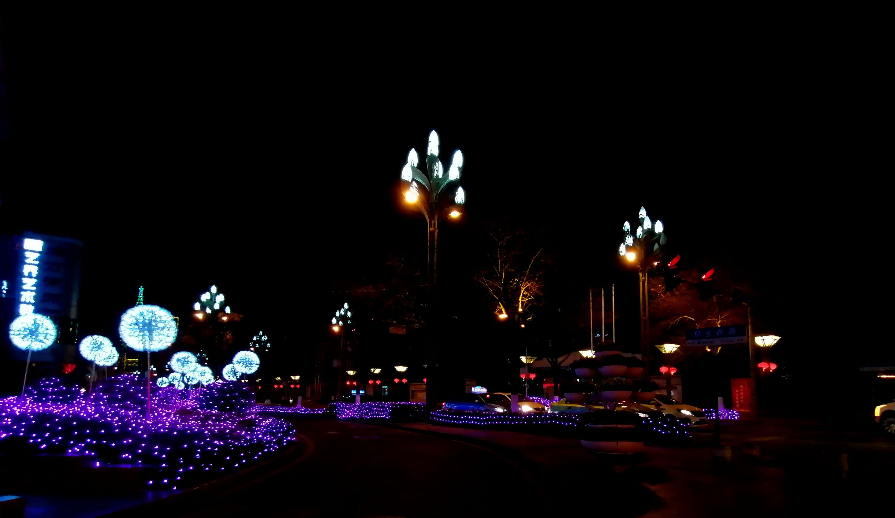 市百货大楼对面,蓝色灯海宛若点点繁星,一株株凌空高举的蒲公英,正把春天的种子播向大地。一年又一年,春已启,美好无限。