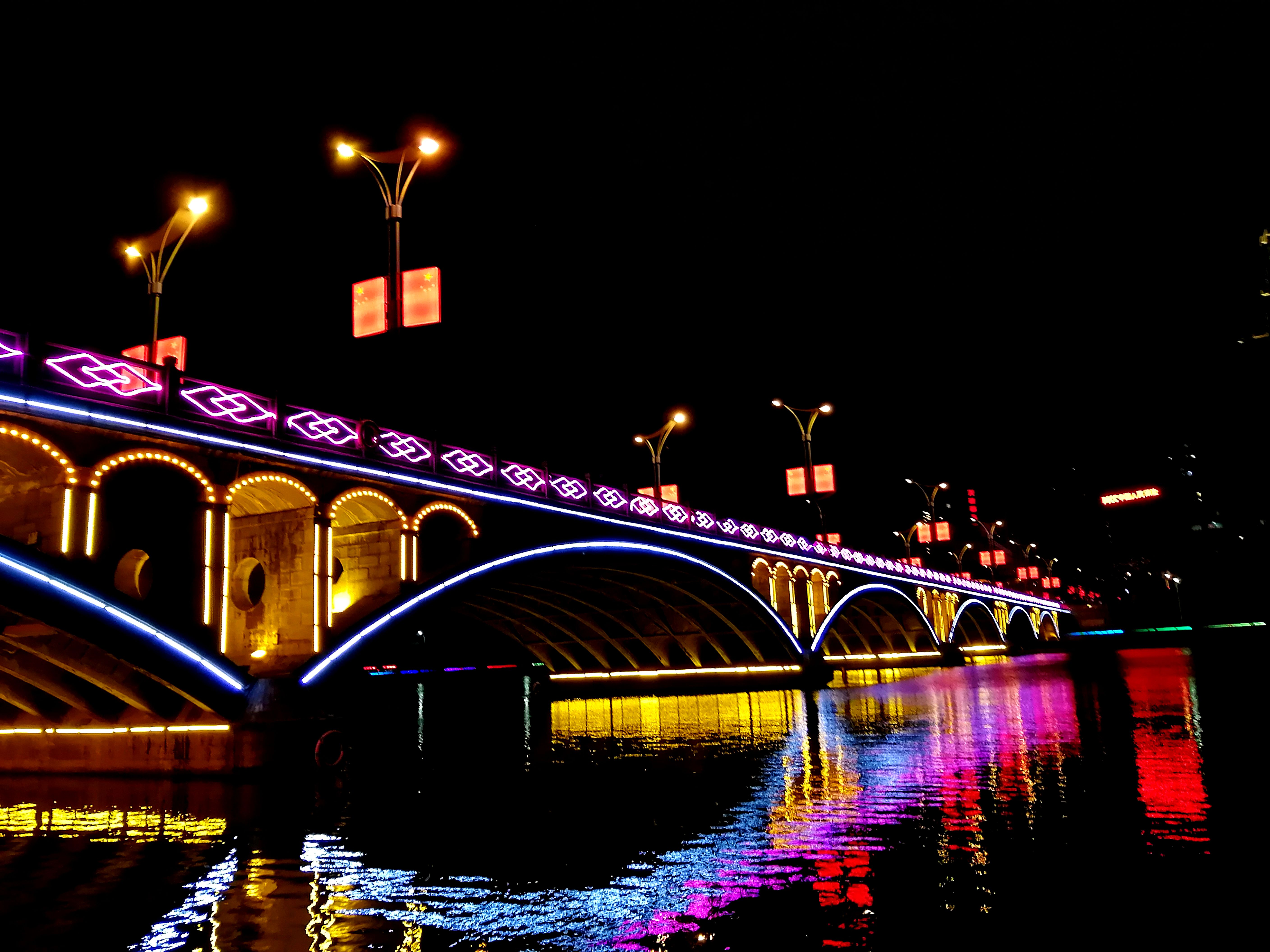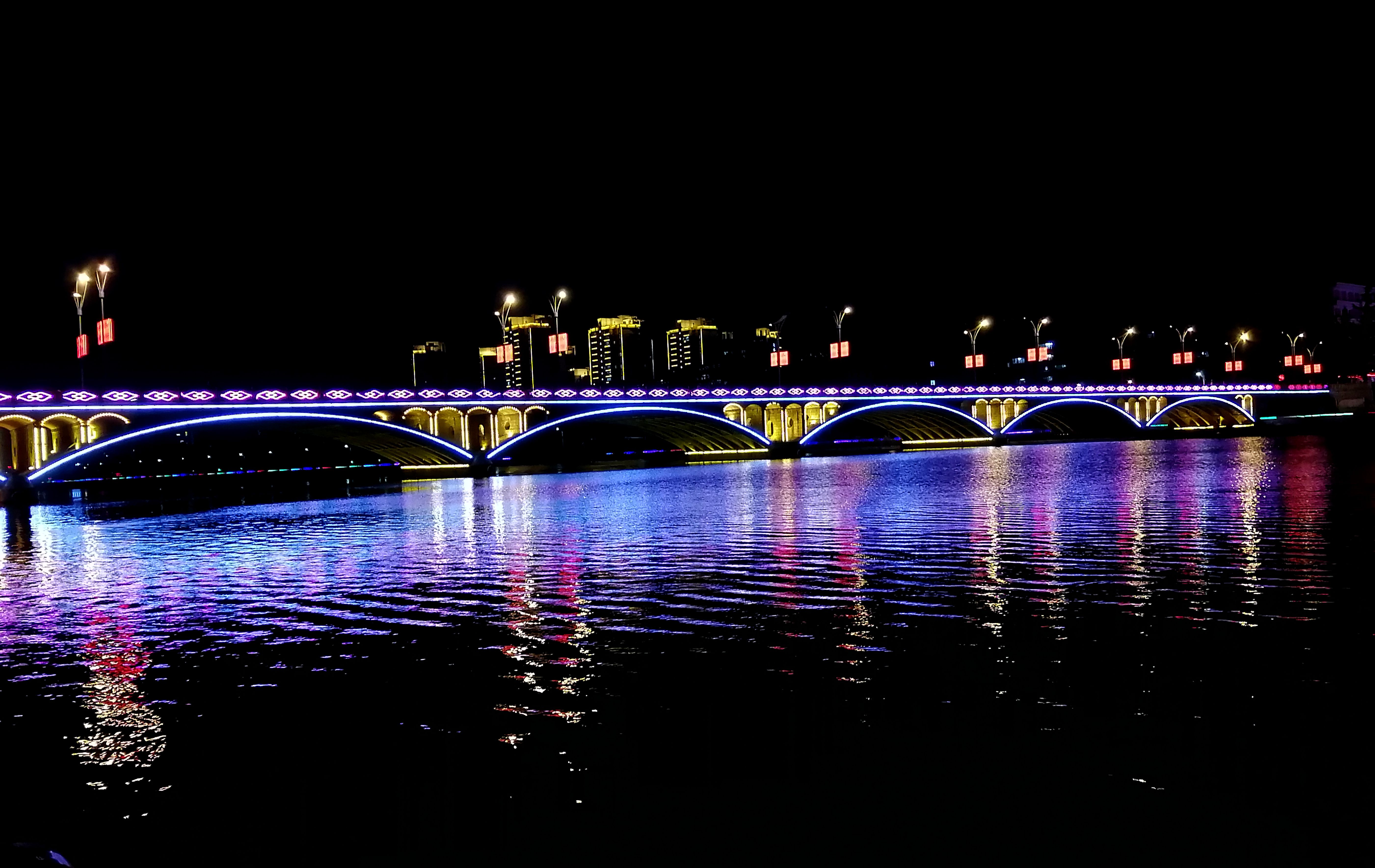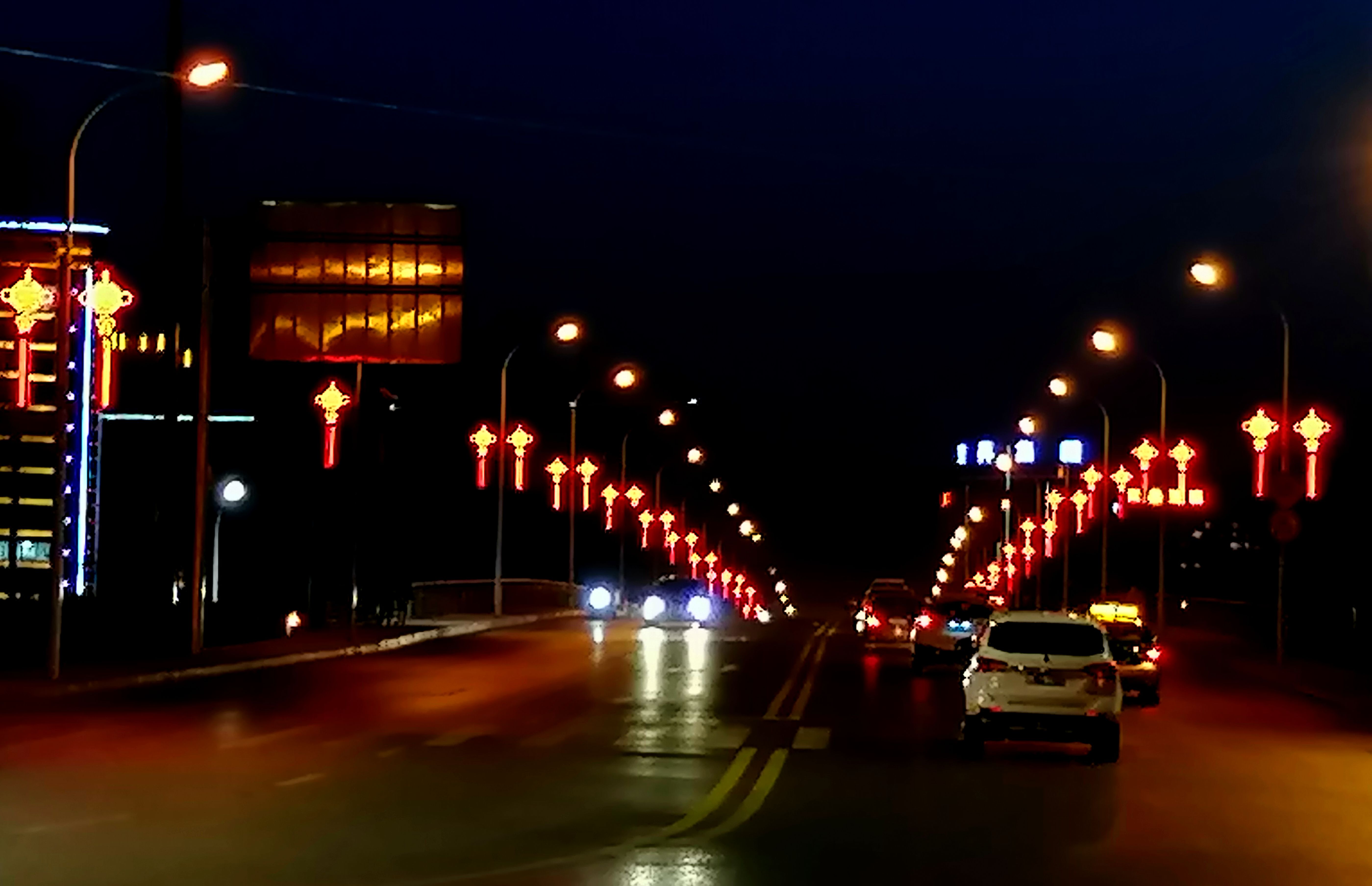 天水赢池大桥上,霓虹灯和车灯一起,辉映出节日的喜气洋洋。车来车往,我们走过了万水千山。征途漫漫,惟有奋斗!