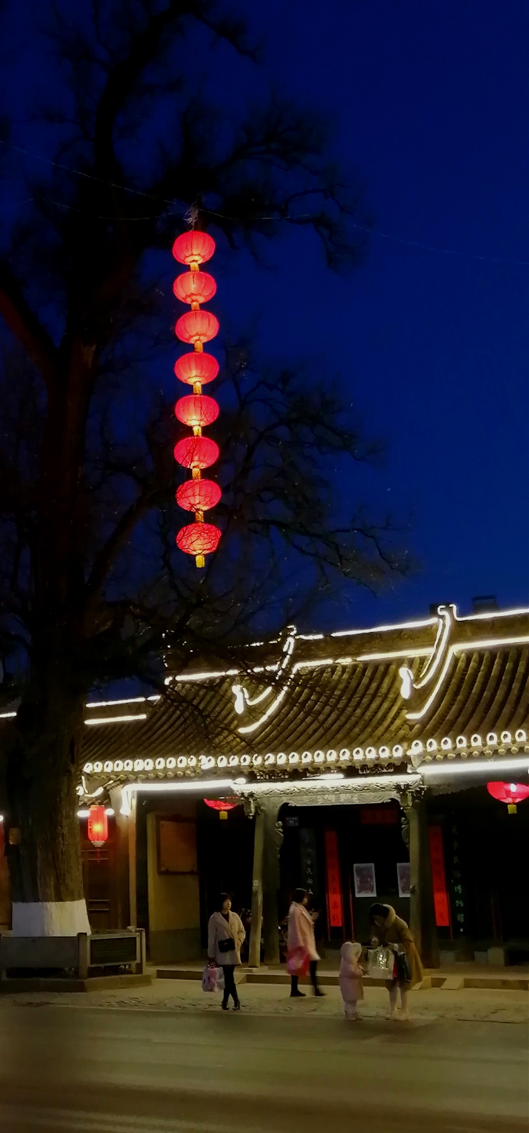 秦州区玉泉观门前长长的街巷里,砖面的色彩和古建的色彩融在了一起。因为有灯,风景更是暖心。