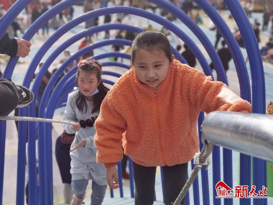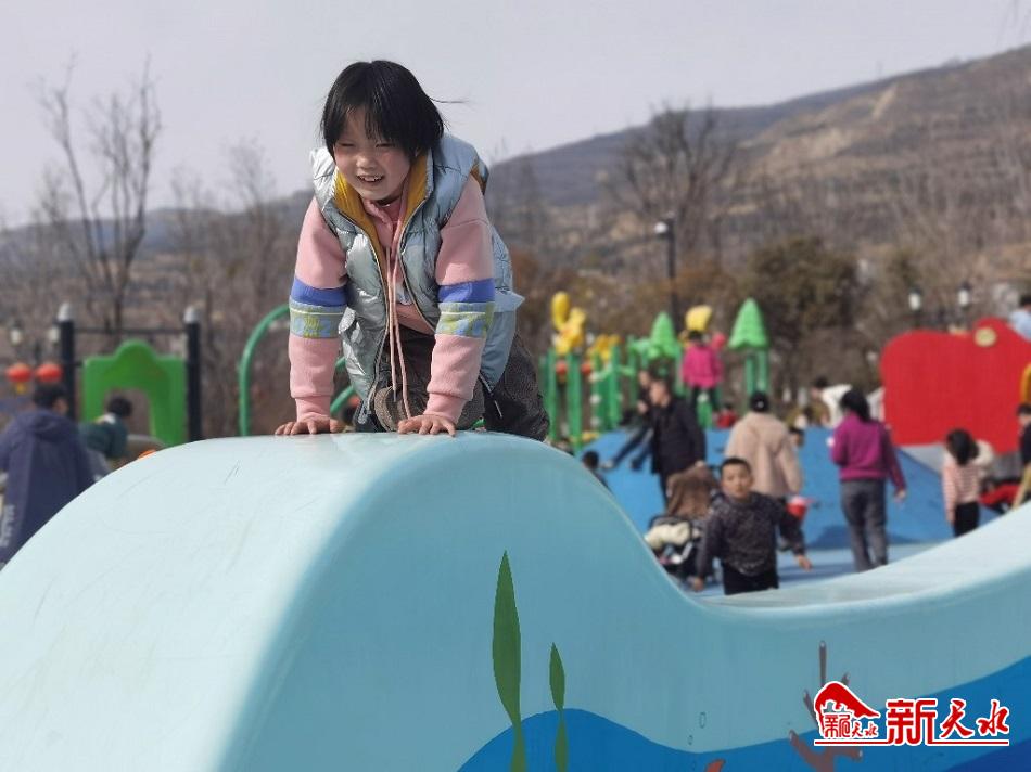 2月17日,市民带孩子在成纪儿童公园游玩。当天天气晴好,气温适宜,园区给孩子们提供了广阔的接触大自然的空间,市民趁着假期带孩子感受自然,享受春光。(新天水记者 陈少娟 摄)