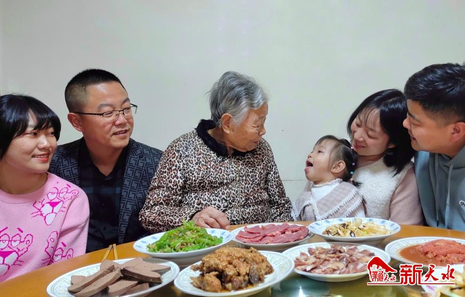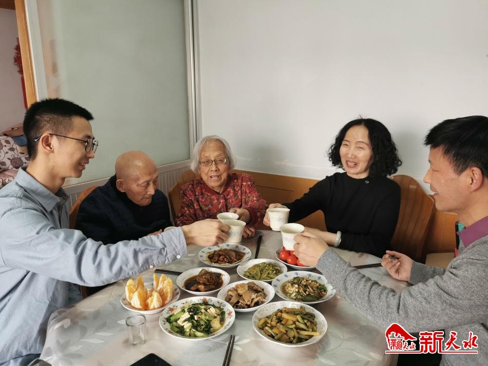 2月11日除夕夜,家住秦州区西十里新华家园的张凤珍老人喜气洋洋。这位94岁的老党员很高兴,在这个万家团聚的日子里,孩子们准备了丰盛的年夜饭,四世同堂陪她迎来又一个欢乐的春节。