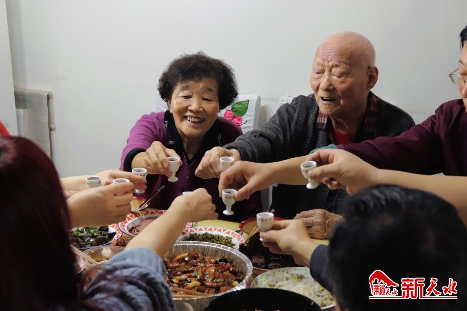 刘致和、段春花和家人举起了欢庆的酒杯