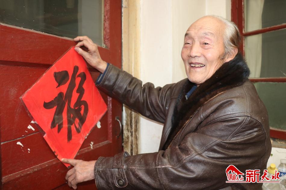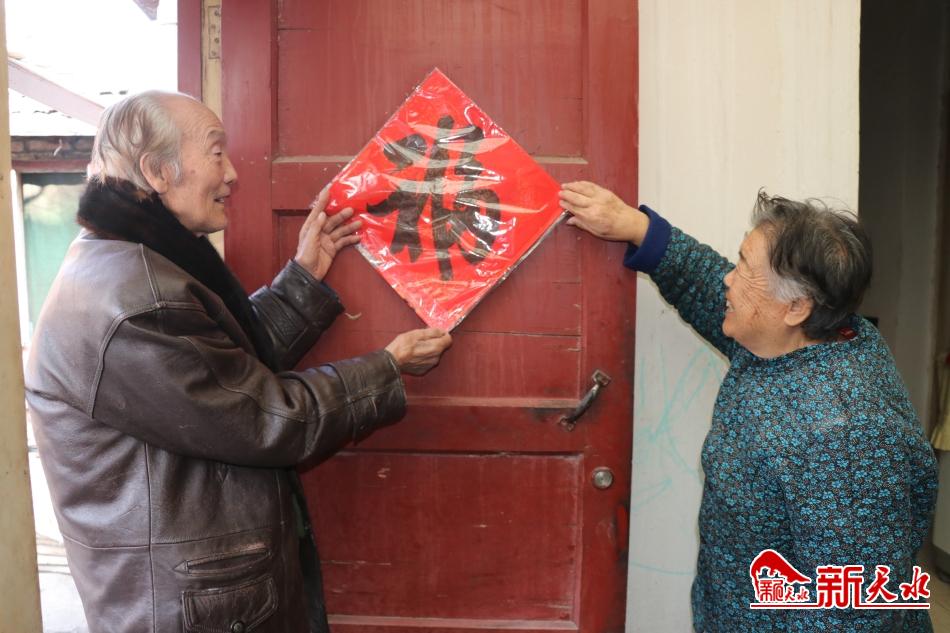 何锐义和老伴在家门上贴出了喜庆的“福”字