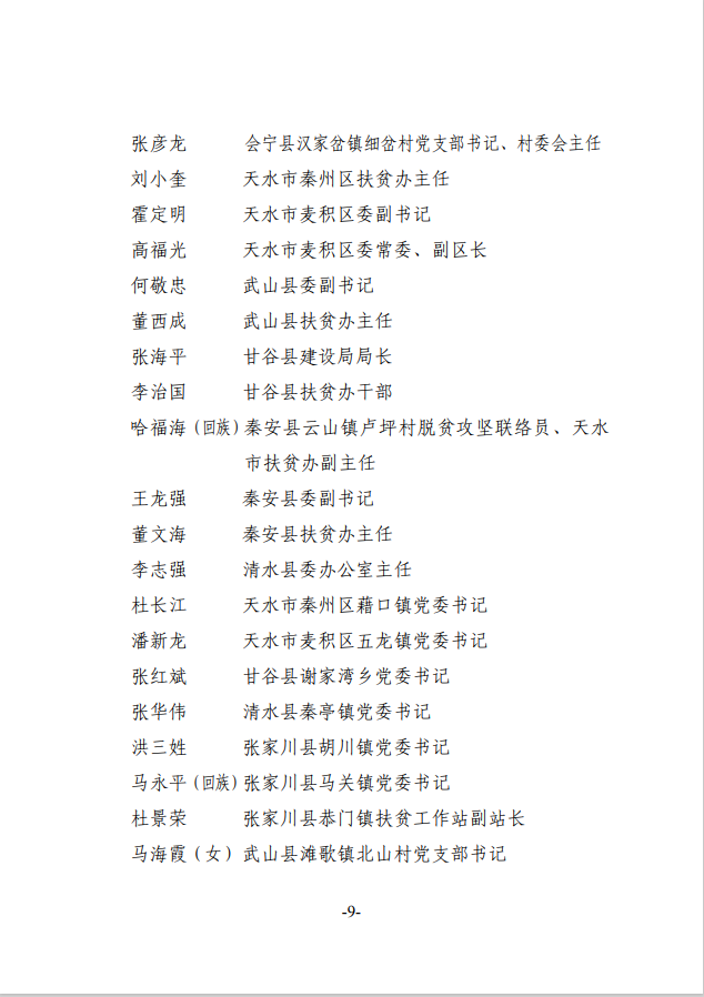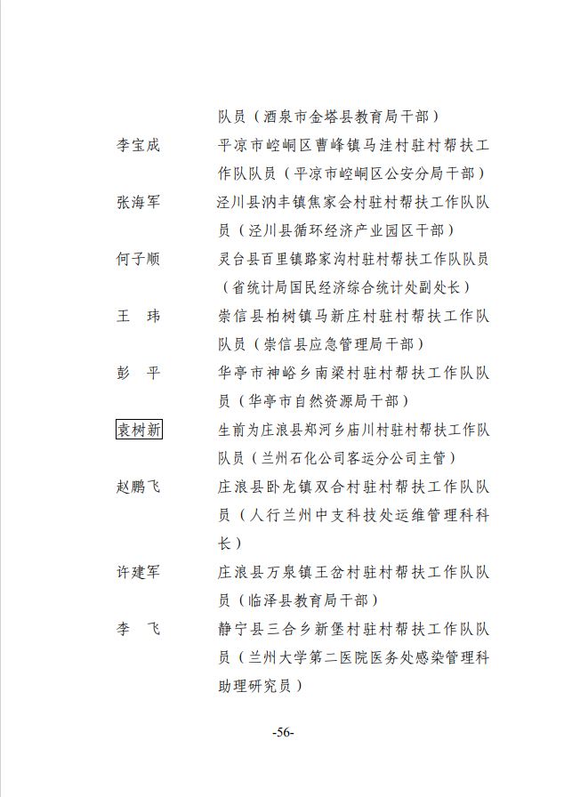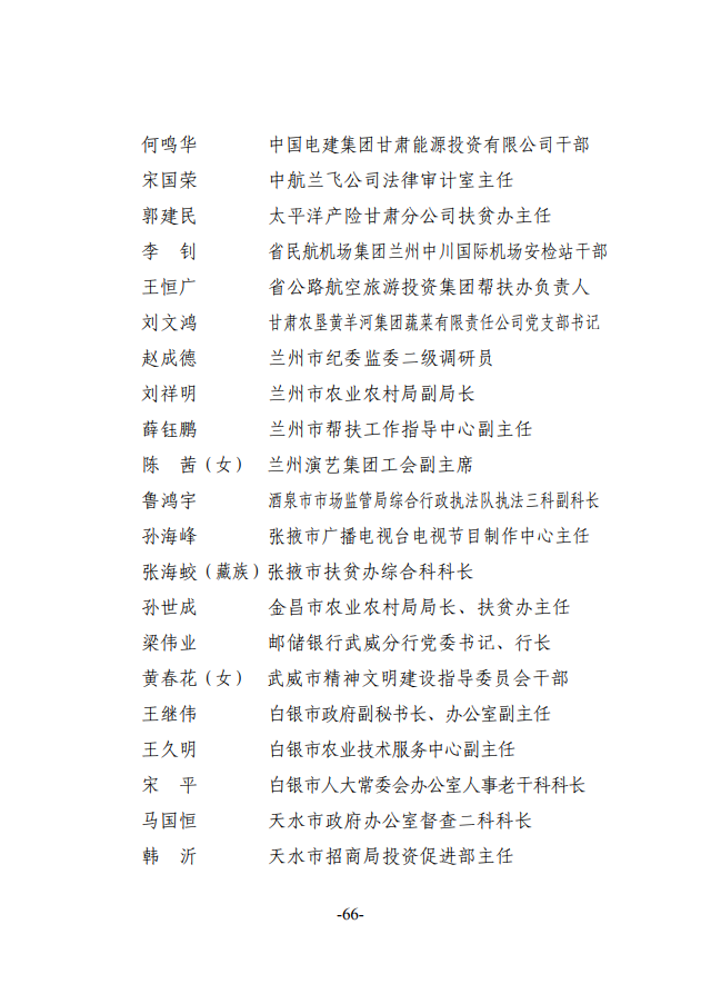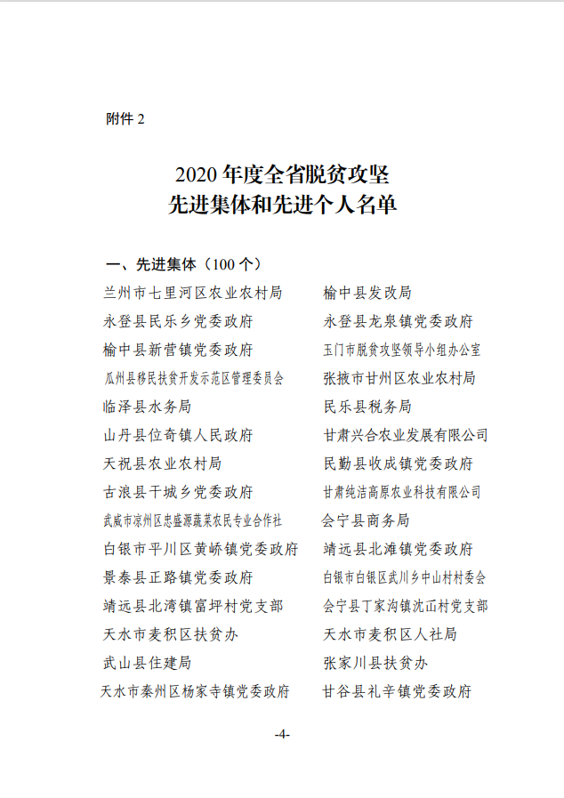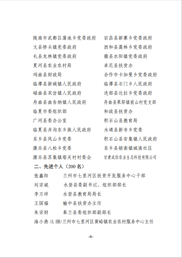 2020年度甘肃省脱贫攻坚先进集体和先进个人拟表彰对象公示