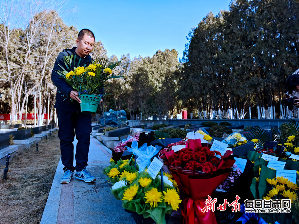 兰州烈士陵园内,“卫国戍边英雄”陈红军墓前鲜花遍地