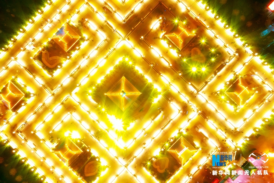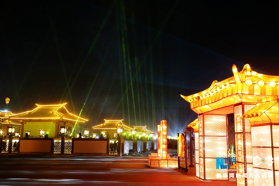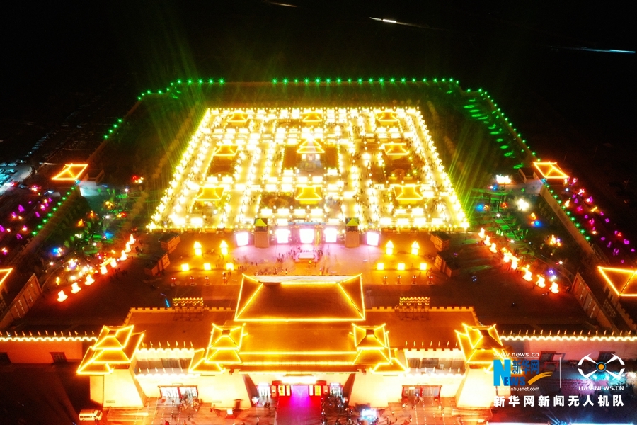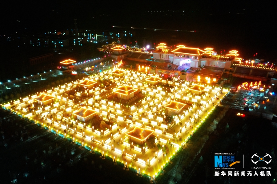 2月23日(农历正月十二)晚上,位于甘肃省张掖市甘州区碱滩镇古城村的屋兰古镇景区华灯璀璨,“九曲黄河灯阵”开启“金牛纳福 ‘牛’转乾坤”启灯活动,吸引上万游人观灯,场面极其壮观。 新华网发(成林 摄)