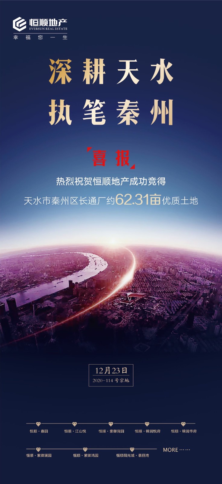 品牌房企首驻天水,大多会选择有潜力的新型片区大举造城,这样做既可以展示实力,也可以有效规避风险,但同时也源于天水城芯地块的稀缺,保利便是其中之一。2019-2020年,保利先后摘下长开厂、金家庄优质地块,其中保利·时光印象占地约54.29亩、保利金家庄项目占地约55.09亩,保利秦州区首作便择址七里墩、秦州第二子更以高价摘得金家庄热门地块,这足以见得保利深耕天水的雄心与匠心。除此之外,一直在麦积区深耕的本土大鳄——恒顺地产也在长通厂片区摘地,这将是恒顺继锦润悦府、锦润华府之后进驻秦州区的第三子,也将是其定鼎城芯的首作。保利、恒顺三大新项目的入市将为天水城区的商品房开发带来更多的想象空间。