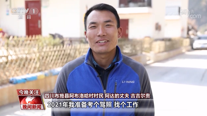 布拖县阿布洛哈村村民 阿达的丈夫 吉吉尔贵:2021年,我准备考个驾照,找个工作。生活就是先苦后甜,我们现在很年轻,要努力,加油,好好干!