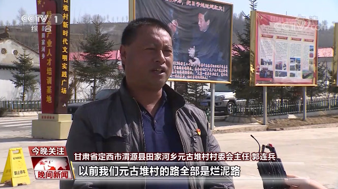 甘肃省定西市渭源县田家河乡元古堆村村委会主任 郭连兵:以前我们元古堆村的路全部是烂泥路,如果遇到下雨,假如说你骑上自行车的话,自行车走着走着就让泥注住了,成自行车骑人的了。像以前的房子基本上就是天上下多大,室内还是下多大,天上雨(停)住了,室内还在下雨。