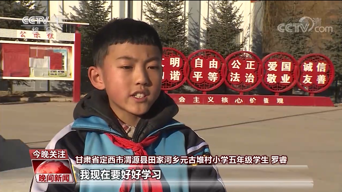 定西市渭源县田家河乡元古堆村小学五年级学生 罗睿:在学校就可以上电脑课,我现在要好好学习,长大之后为我的家乡做贡献。