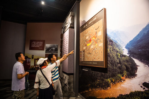 游客在娄山关红军战斗遗址陈列馆参观(2019年7月4日摄)。